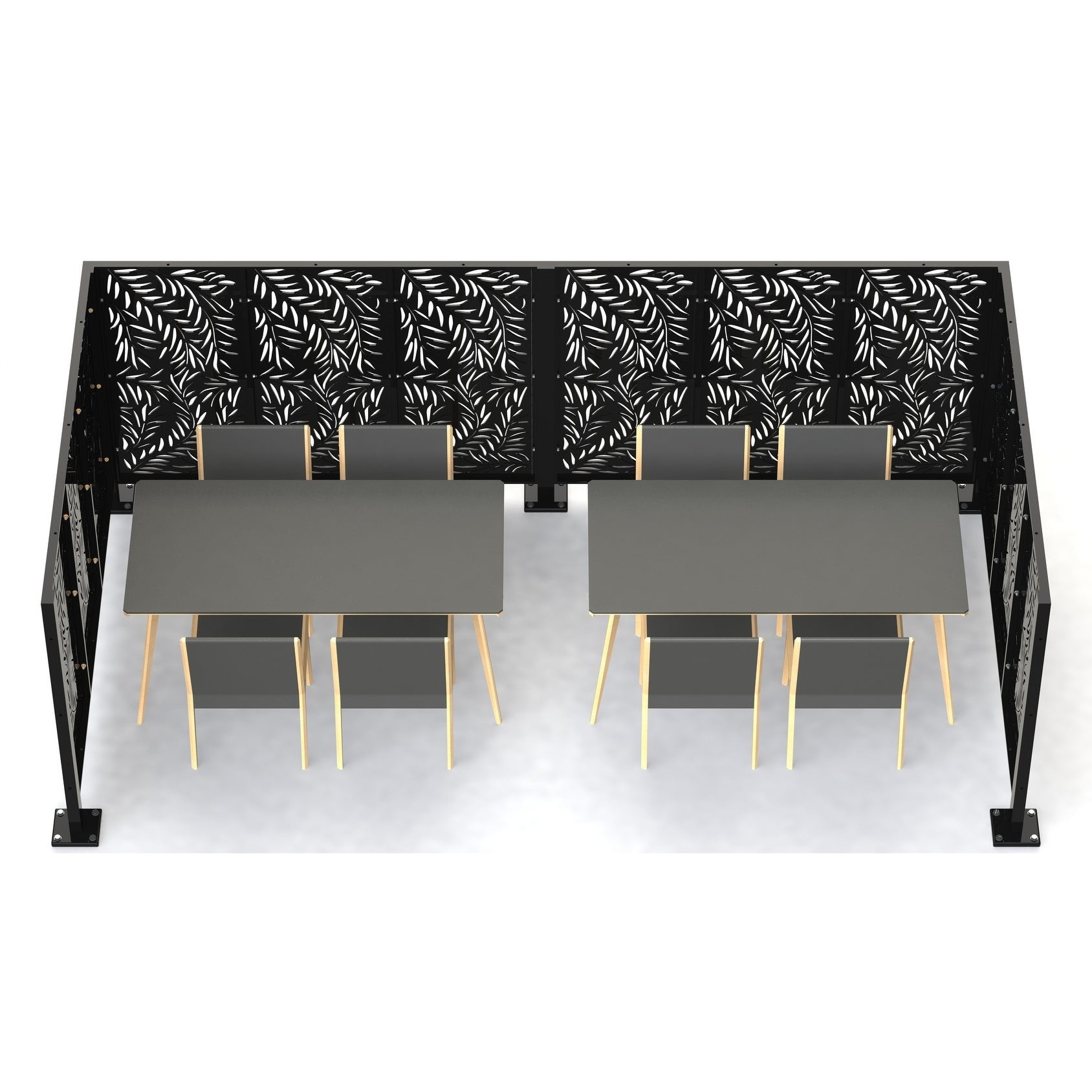 Écrans extérieurs: Si vous cherchez à créer des zones séparées ou à ajouter de l'intimité à un espace extérieur, vous pouvez trouver des écrans de séparation de pièce spécialement conçus pour une utilisation en extérieur.Ces écrans sont faits de matériaux résistants aux intempéries., tels que le métal, le rotin synthétique ou les tissus pour l'extérieur, et sont conçus pour résister à l'exposition aux éléments.